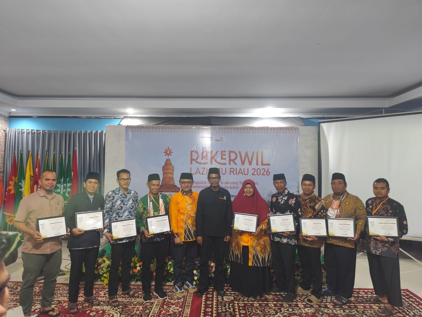 KOTA PEKANBARU – Rapat Kerja Wilayah (Rakerwil) Lazismu Riau 2026 dimeriahkan dengan penyerahan penghargaan tahunan yaitu Lazismu Riau Award. Penyerahan Lazismu Riau Award dilakukan pada Jumat (06/02) di Stanum Bangkinang, Kec. Bangkinang, Kabupaten Kampar, Riau mengiringi pembukaan Rakerwil yang dihadiri oleh perwakilan Lazismu tingkat daerah dari berbagai daerah di Provinsi Riau .